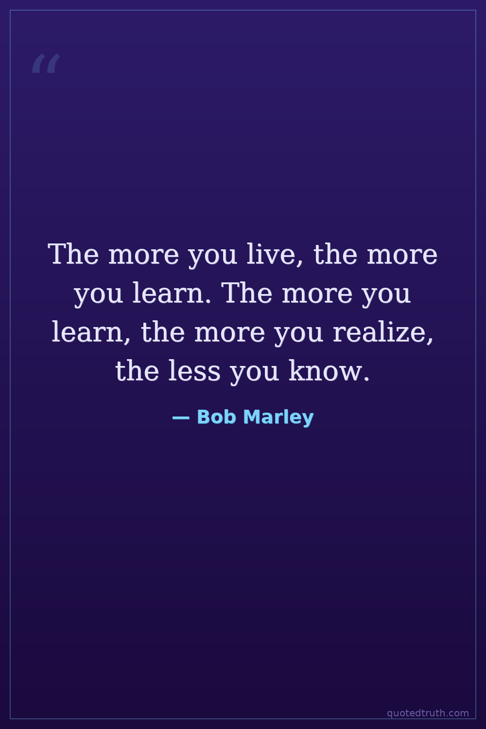 The more you live, the more you learn. The more you learn, the more you realize, the less you know.