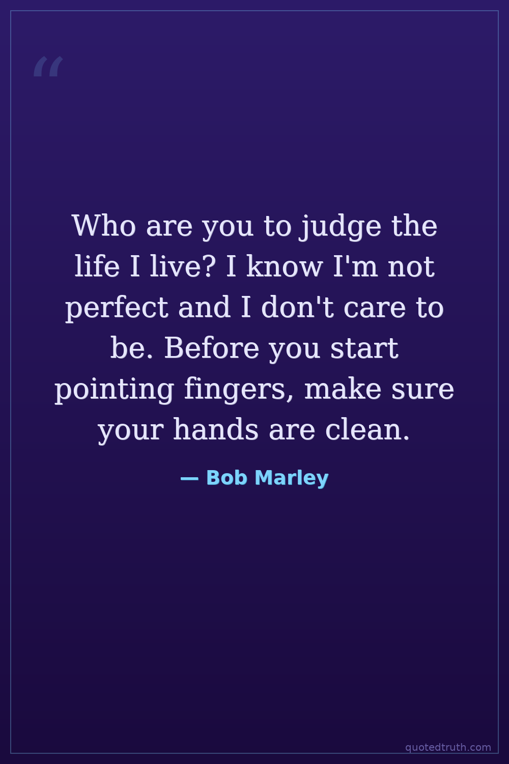 Who are you to judge the life I live? I know I'm not perfect and I don't care to be. Before you start pointing fingers, make sure your hands are clean.