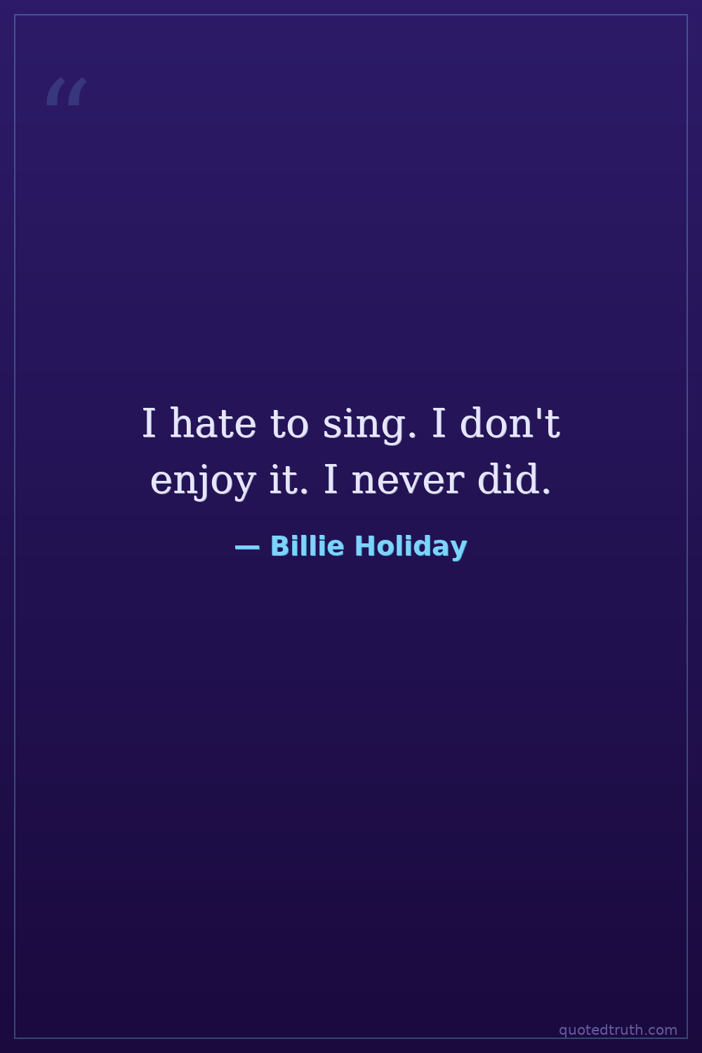 I hate to sing. I don't enjoy it. I never did.