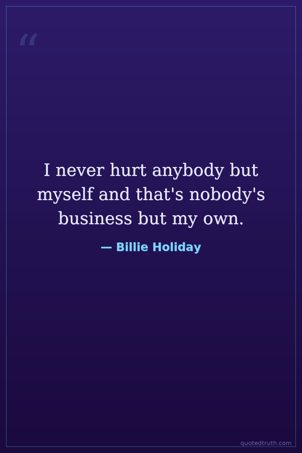 I never hurt anybody but myself and that's nobody's business but my own.