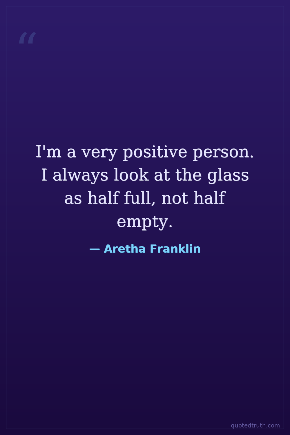 I'm a very positive person. I always look at the glass as half full, not half empty.