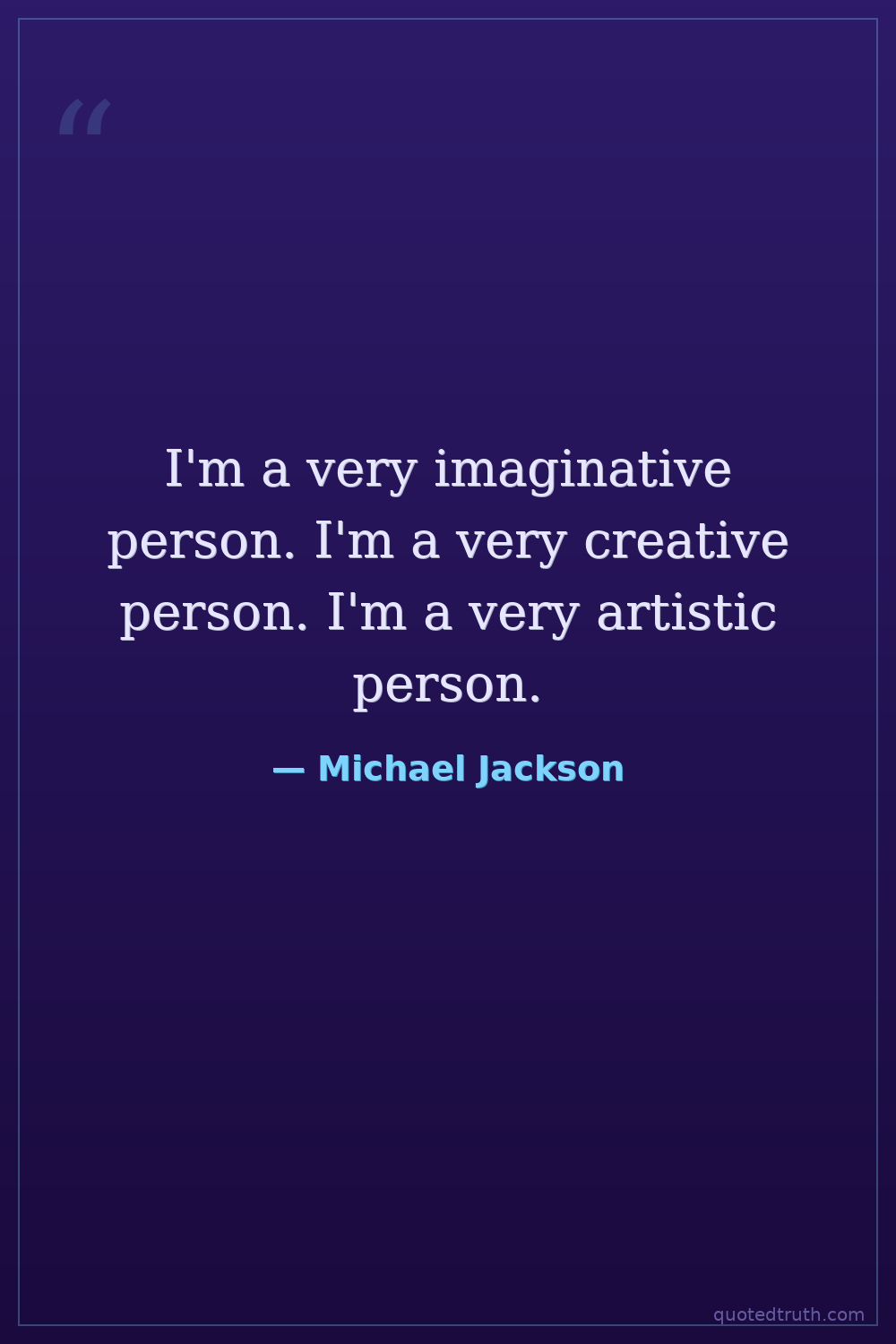 I'm a very imaginative person. I'm a very creative person. I'm a very artistic person.