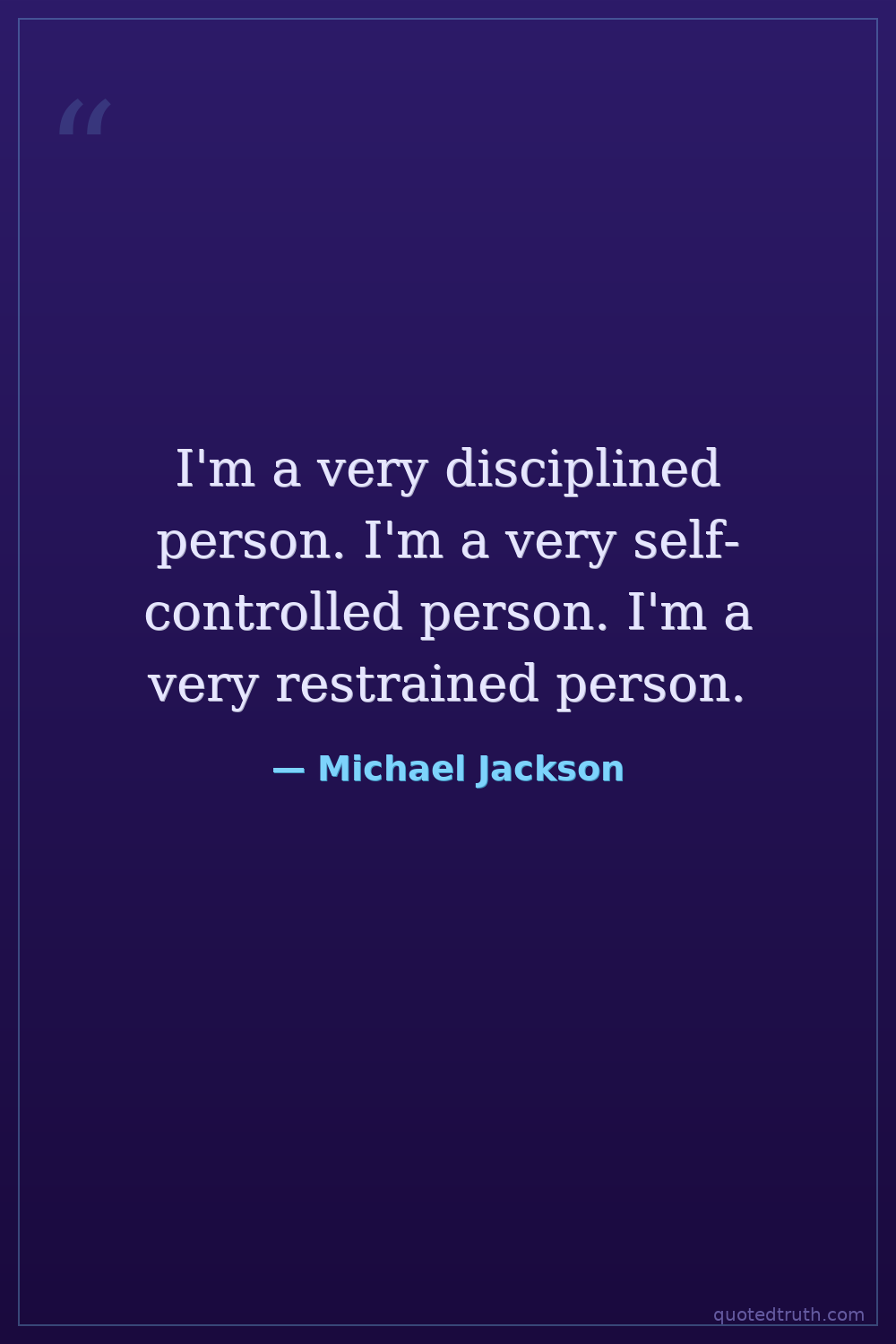I'm a very disciplined person. I'm a very self-controlled person. I'm a very restrained person.