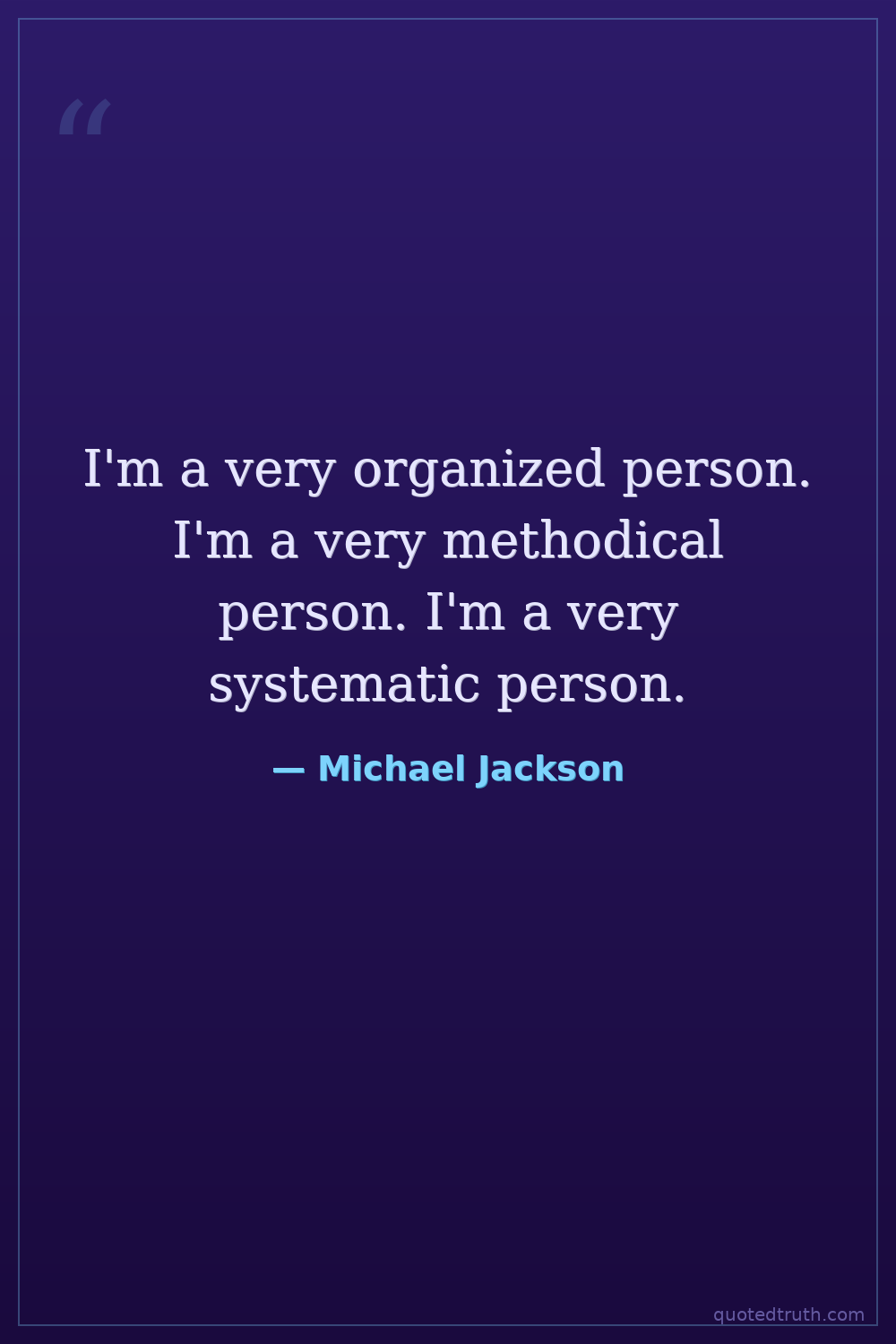 I'm a very organized person. I'm a very methodical person. I'm a very systematic person.