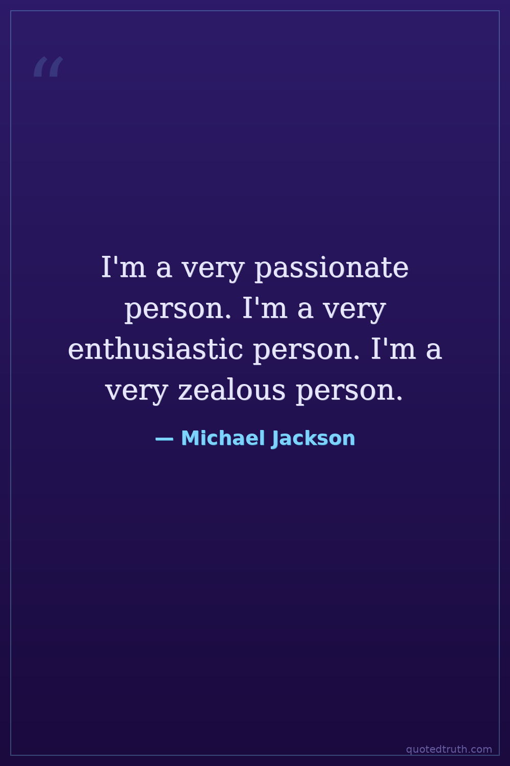 I'm a very passionate person. I'm a very enthusiastic person. I'm a very zealous person.