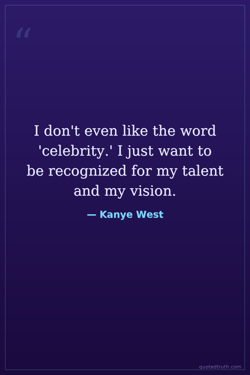 I don't even like the word 'celebrity.' I just want to be recognized for my talent and my vision.