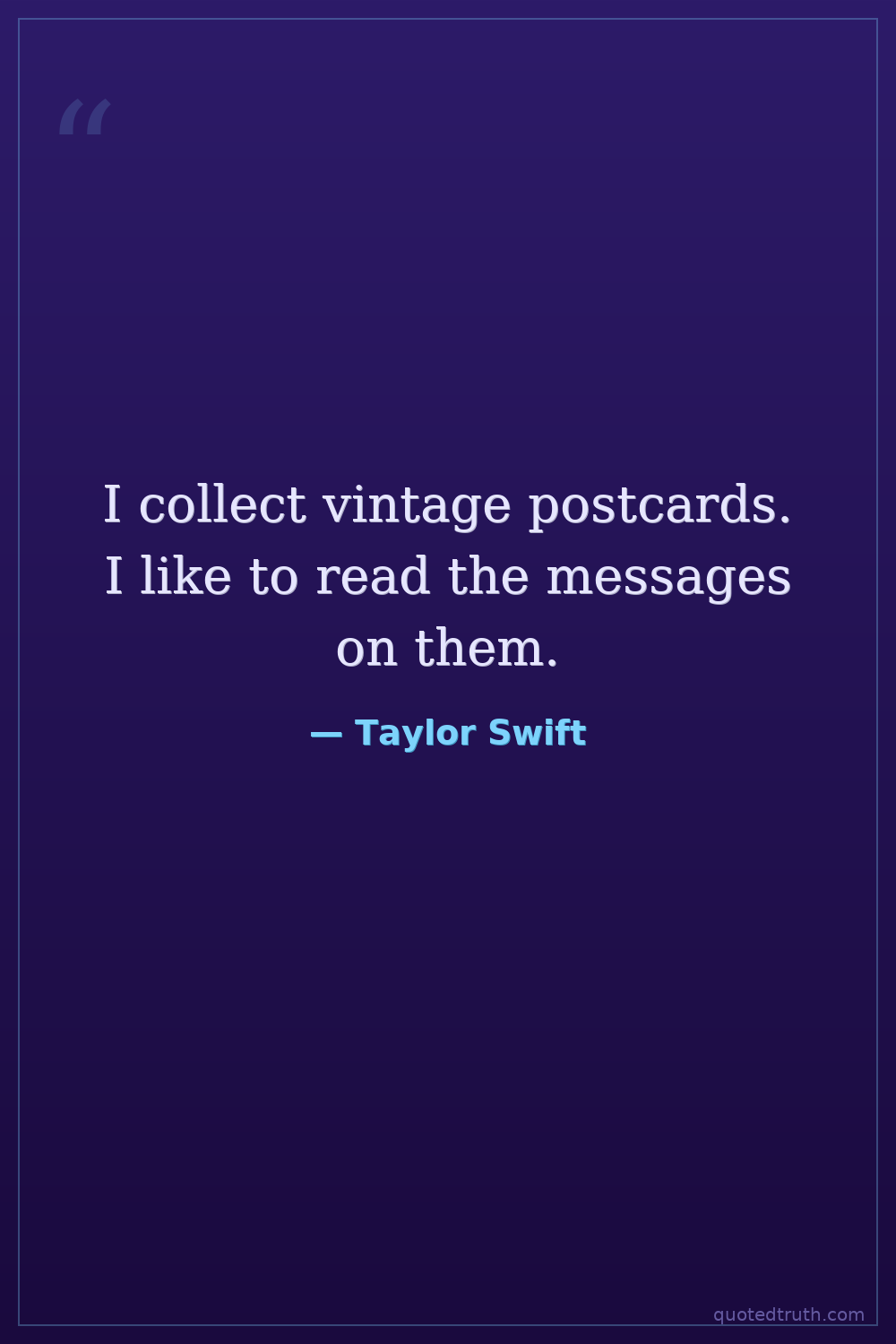I collect vintage postcards. I like to read the messages on them.