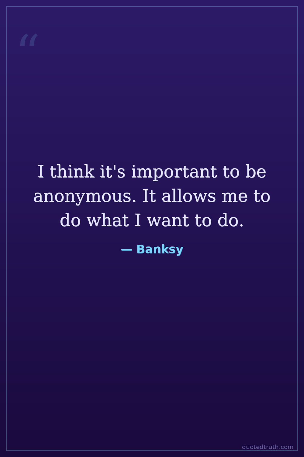 I think it's important to be anonymous. It allows me to do what I want to do.