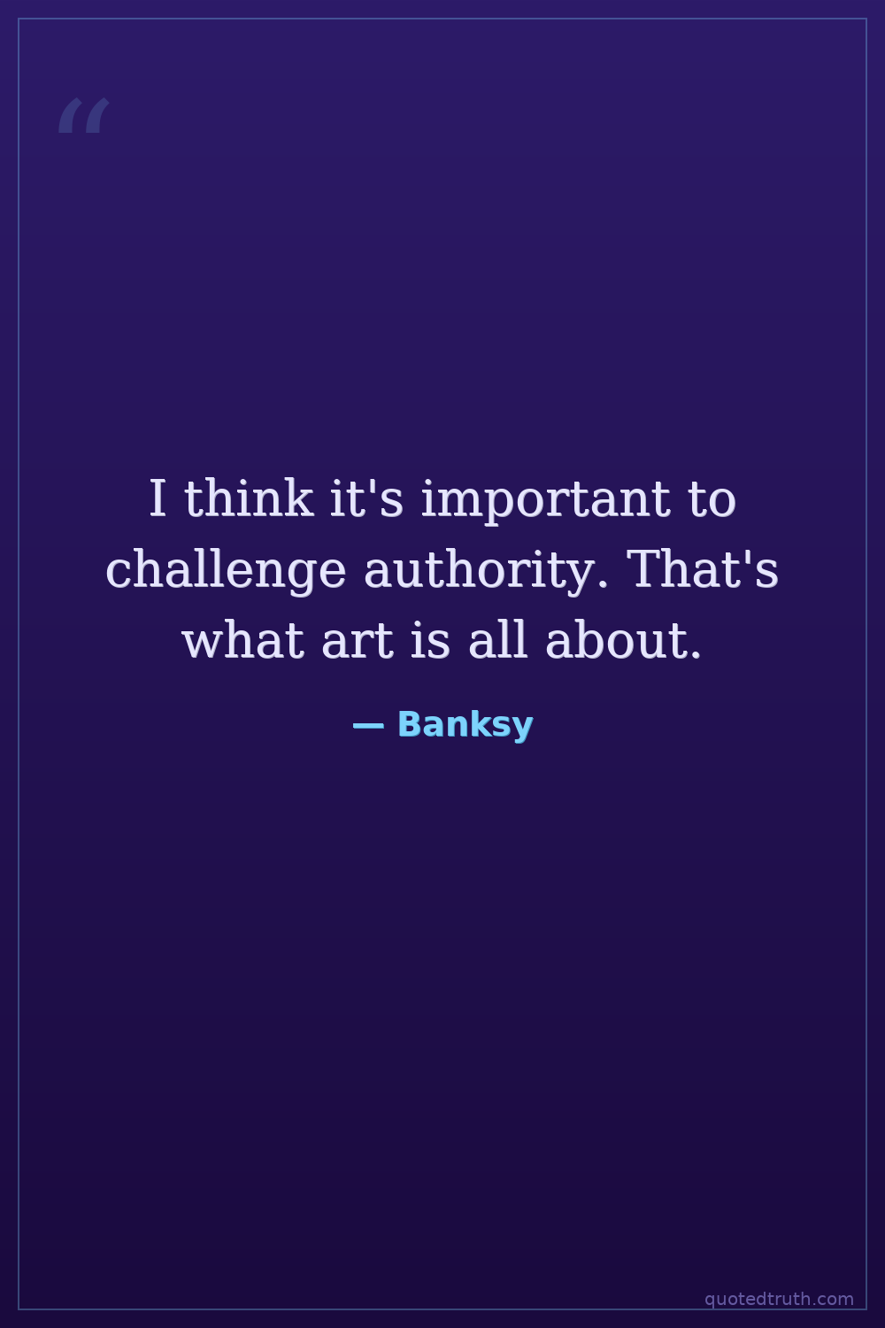 I think it's important to challenge authority. That's what art is all about.