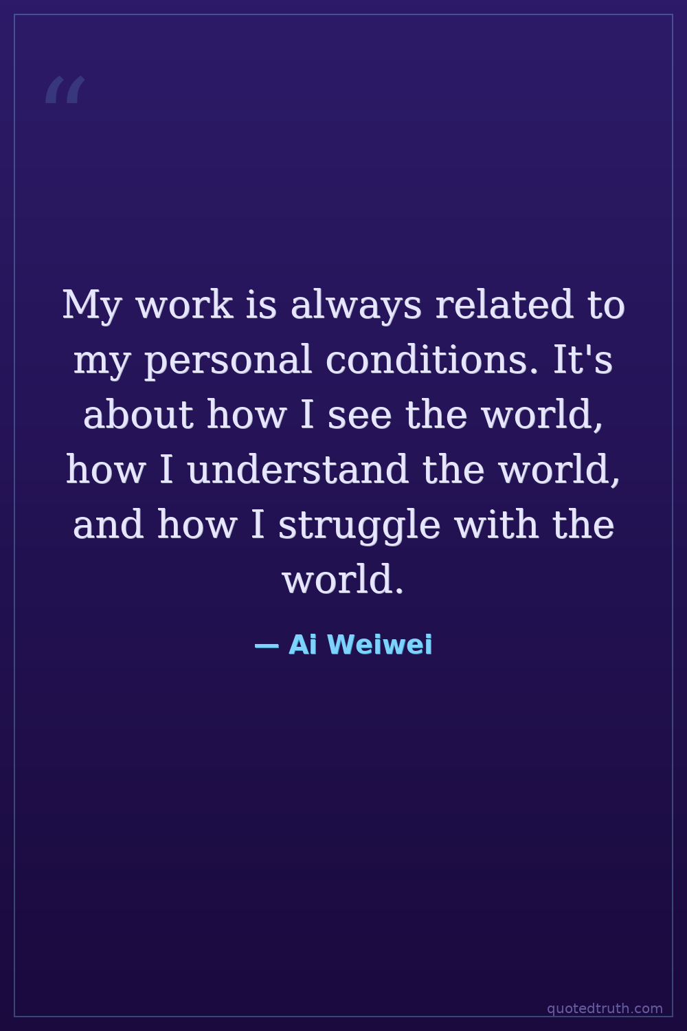 My work is always related to my personal conditions. It's about how I see the world, how I understand the world, and how I struggle with the world.