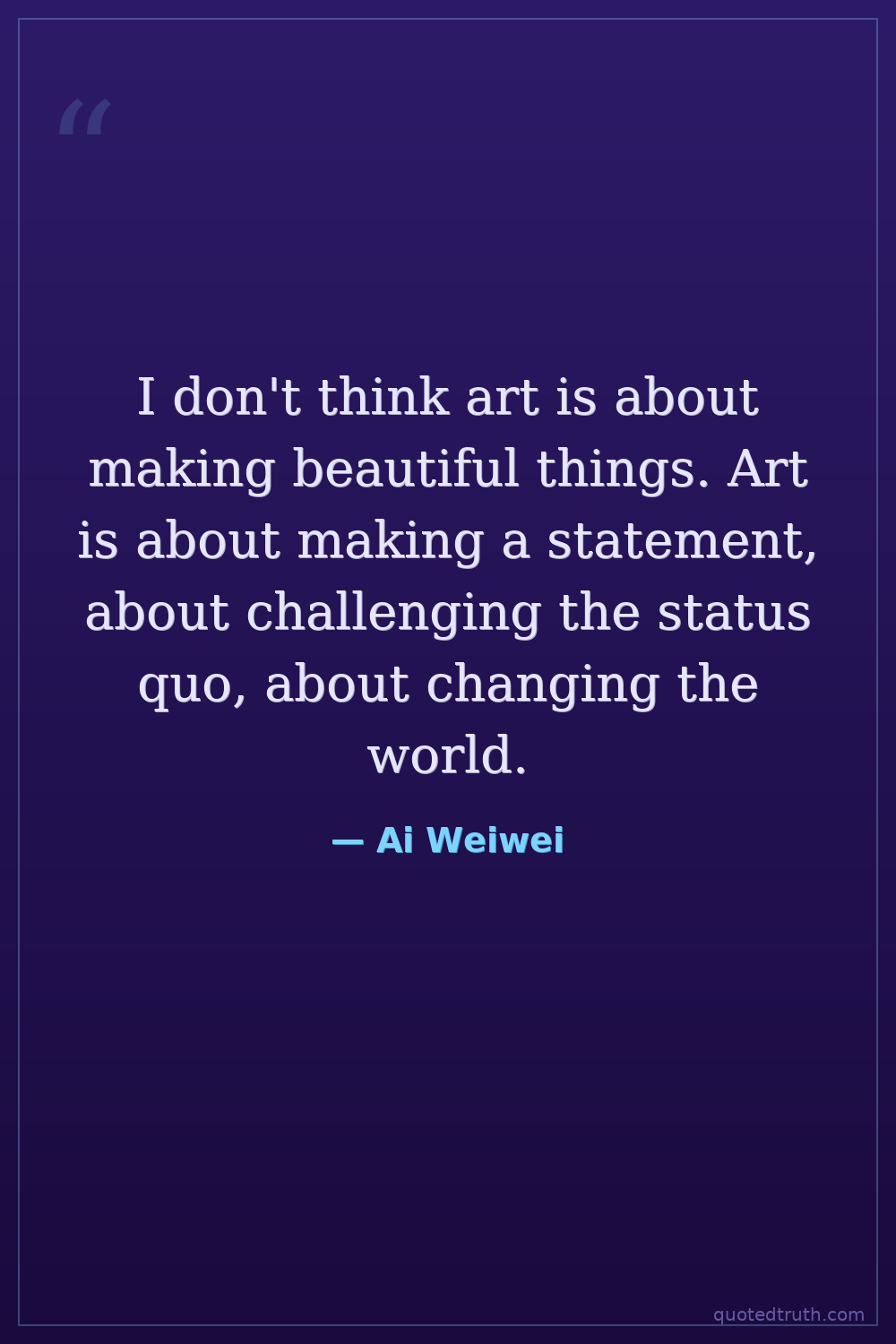 I don't think art is about making beautiful things. Art is about making a statement, about challenging the status quo, about changing the world.