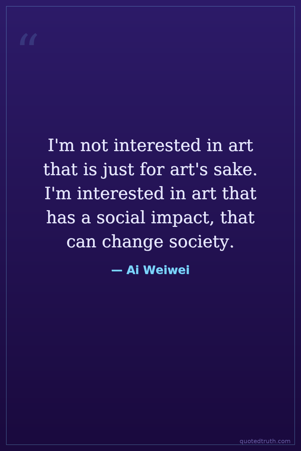 I'm not interested in art that is just for art's sake. I'm interested in art that has a social impact, that can change society.