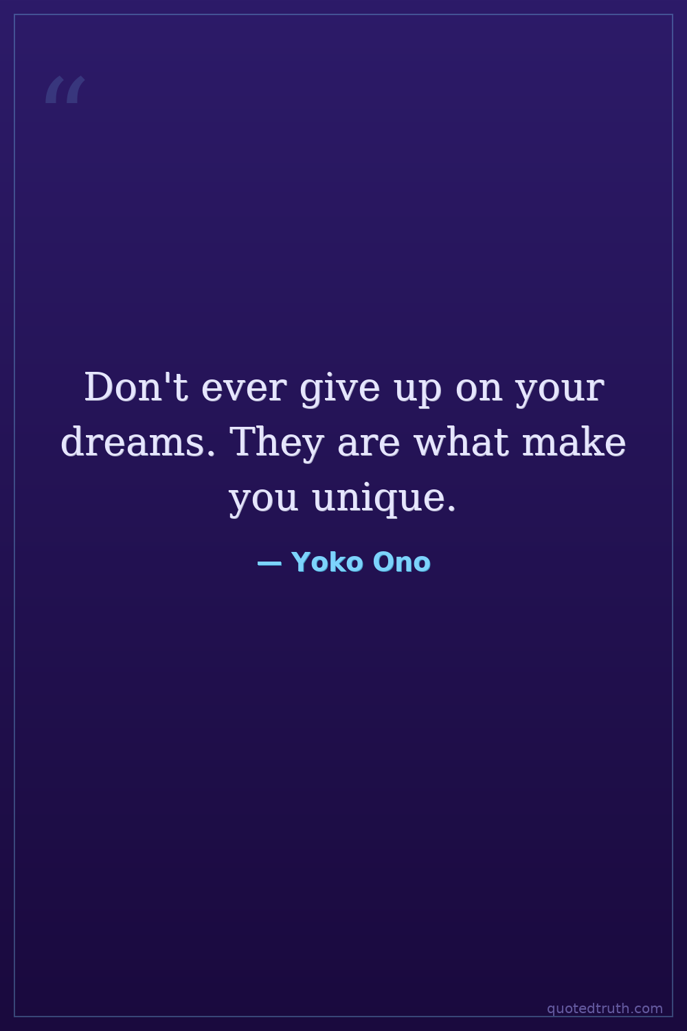 Don't ever give up on your dreams. They are what make you unique.