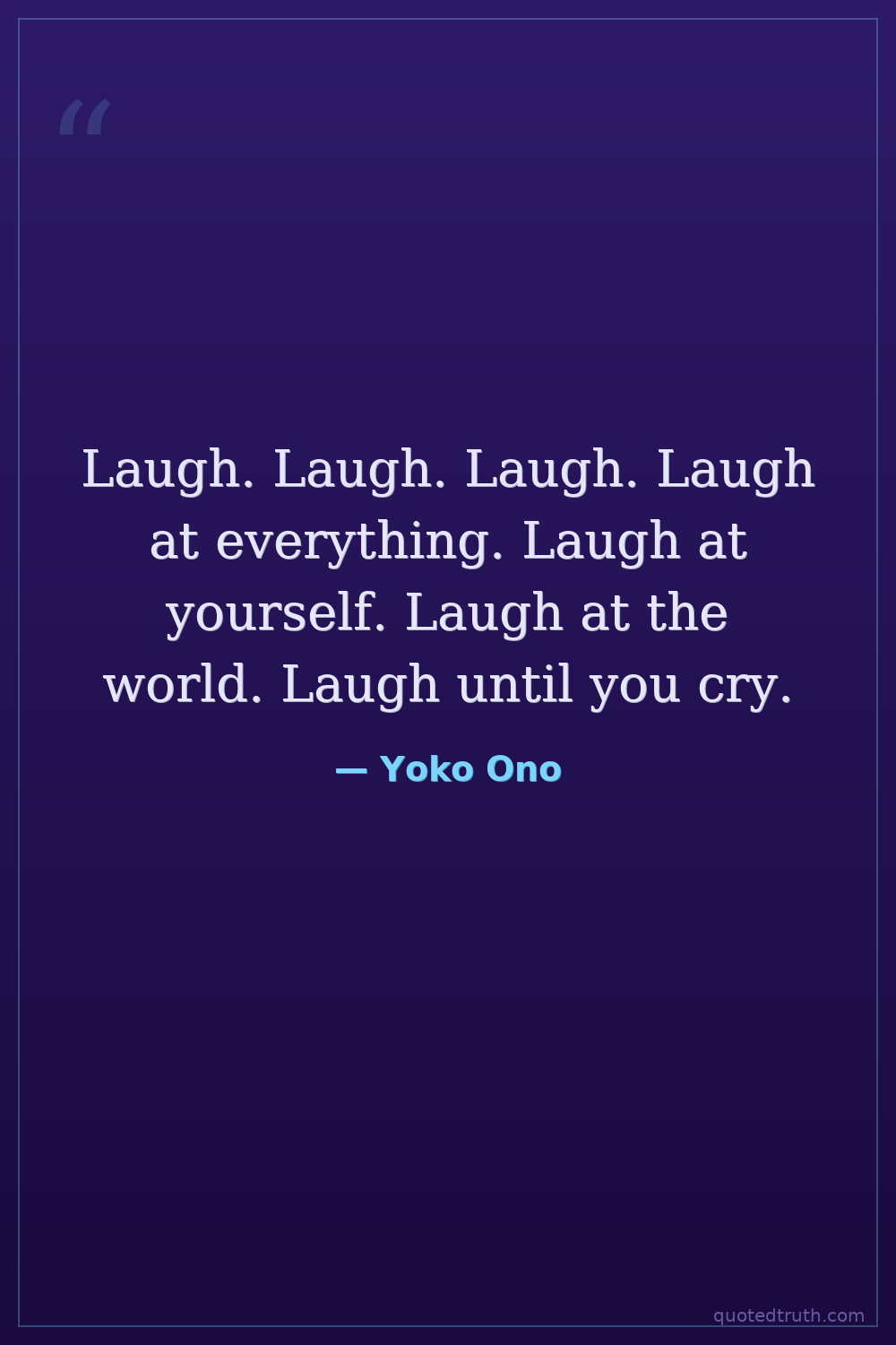 Laugh. Laugh. Laugh. Laugh at everything. Laugh at yourself. Laugh at the world. Laugh until you cry.