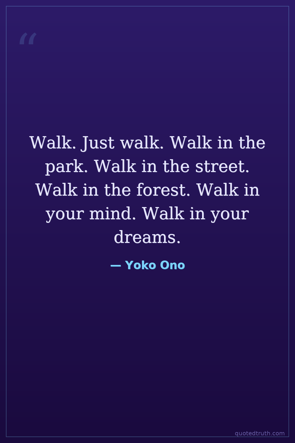 Walk. Just walk. Walk in the park. Walk in the street. Walk in the forest. Walk in your mind. Walk in your dreams.