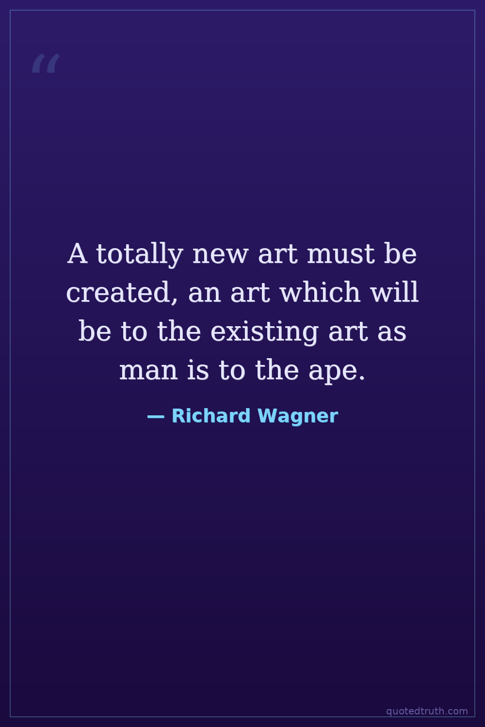 A totally new art must be created, an art which will be to the existing art as man is to the ape.