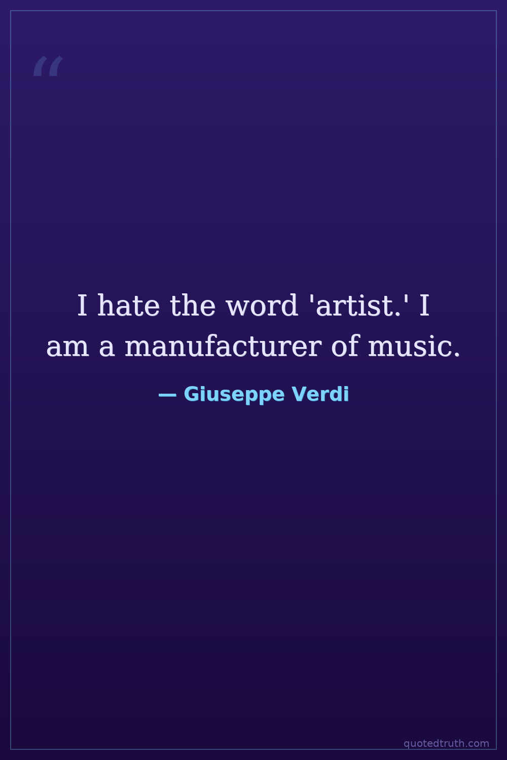 I hate the word 'artist.' I am a manufacturer of music.