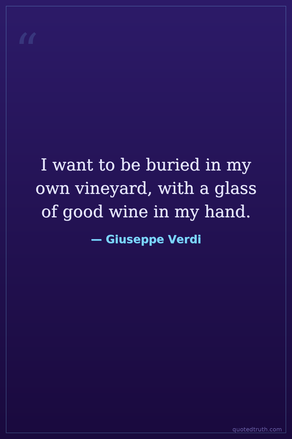 I want to be buried in my own vineyard, with a glass of good wine in my hand.