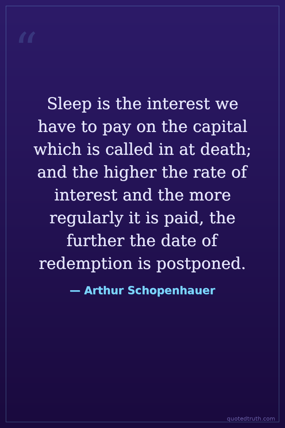 Sleep is the interest we have to pay on the capital which is called in at death; and the higher the rate of interest and the more regularly it is paid, the further the date of redemption is postponed.