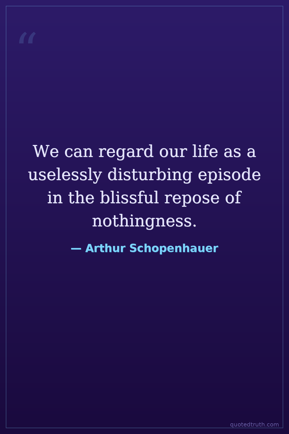 We can regard our life as a uselessly disturbing episode in the blissful repose of nothingness.