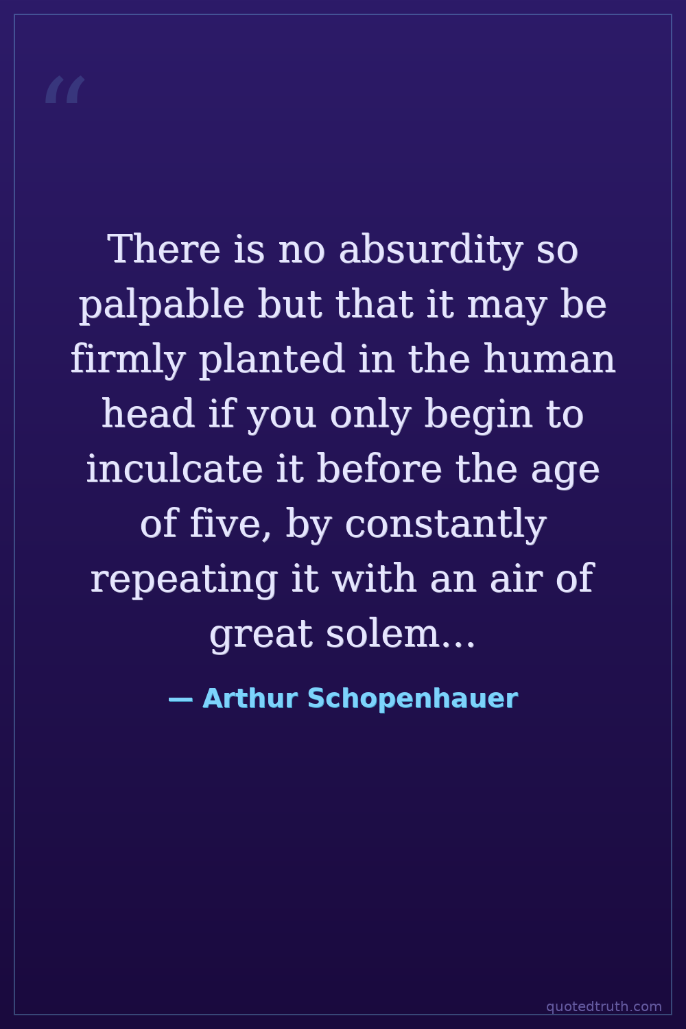 There is no absurdity so palpable but that it may be firmly planted in the human head if you only begin to inculcate it before the age of five, by constantly repeating it with an air of great solemnity.