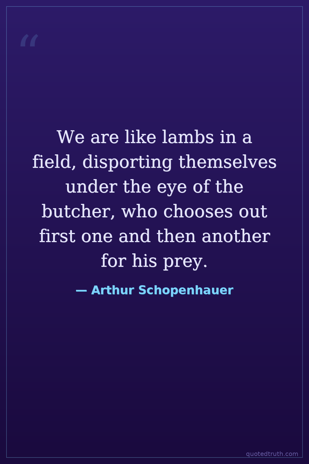 We are like lambs in a field, disporting themselves under the eye of the butcher, who chooses out first one and then another for his prey.