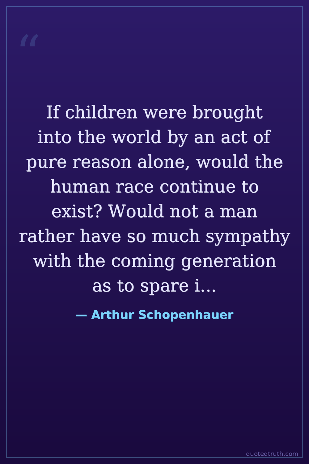 If children were brought into the world by an act of pure reason alone, would the human race continue to exist? Would not a man rather have so much sympathy with the coming generation as to spare it the burden of existence?