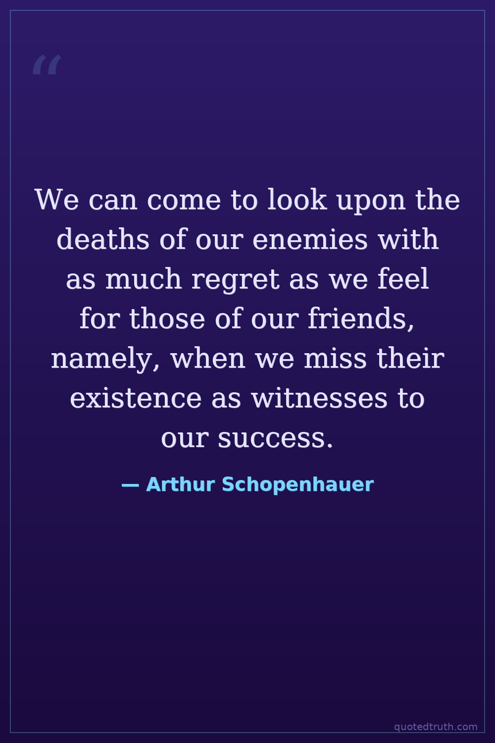 We can come to look upon the deaths of our enemies with as much regret as we feel for those of our friends, namely, when we miss their existence as witnesses to our success.