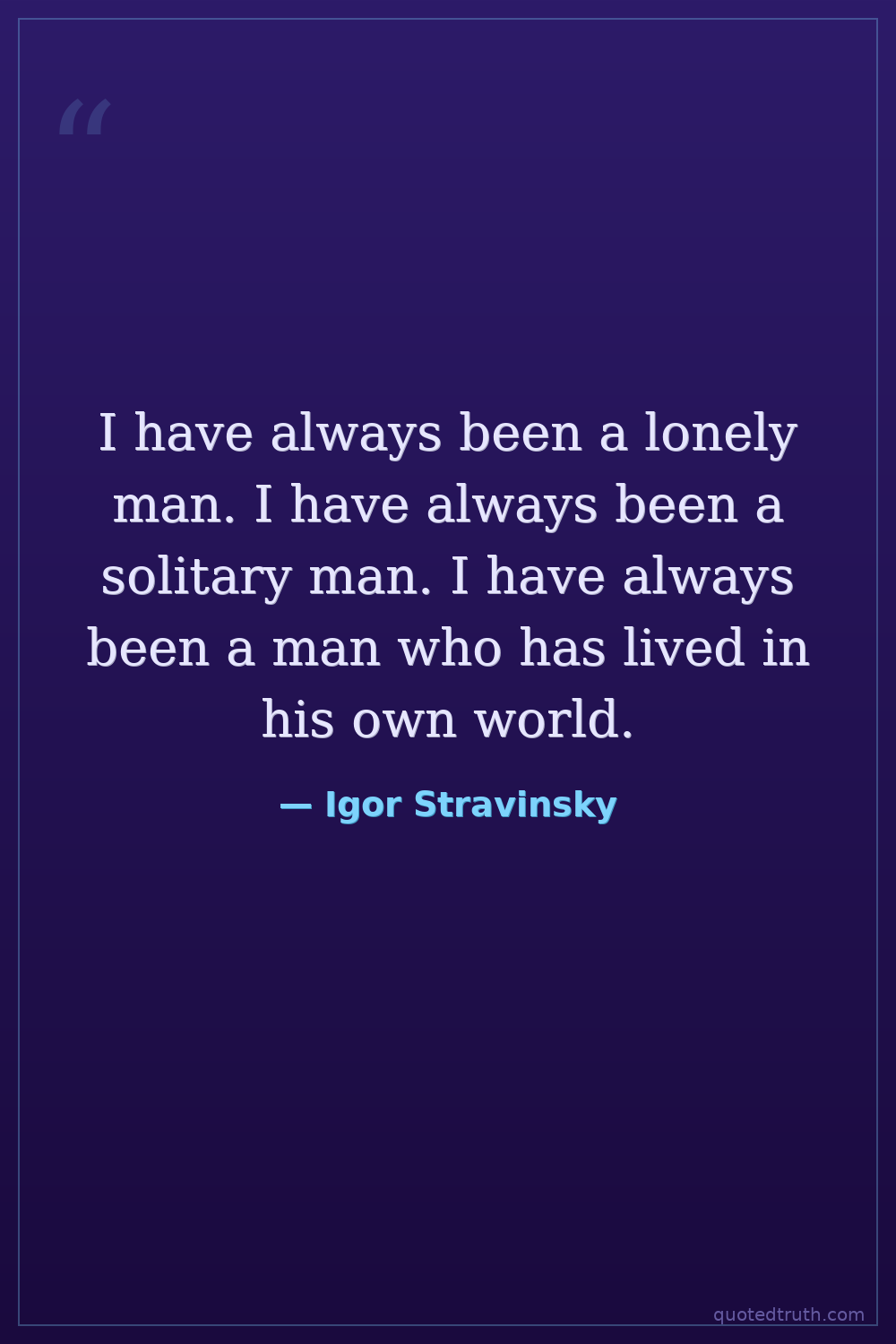 I have always been a lonely man. I have always been a solitary man. I have always been a man who has lived in his own world.