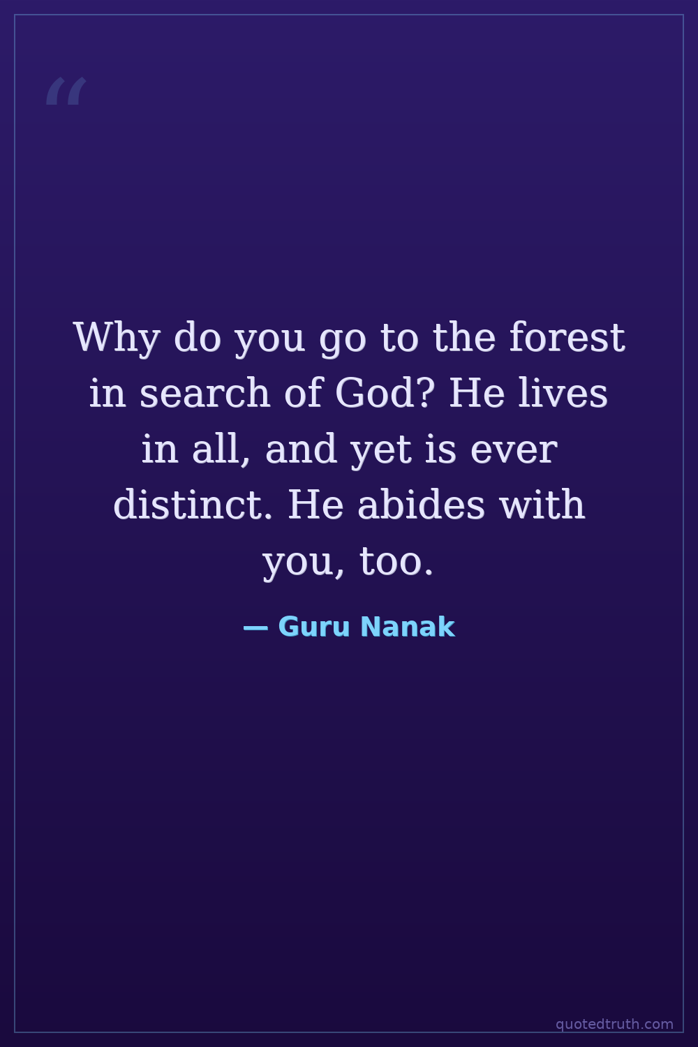 Why do you go to the forest in search of God? He lives in all, and yet is ever distinct. He abides with you, too.
