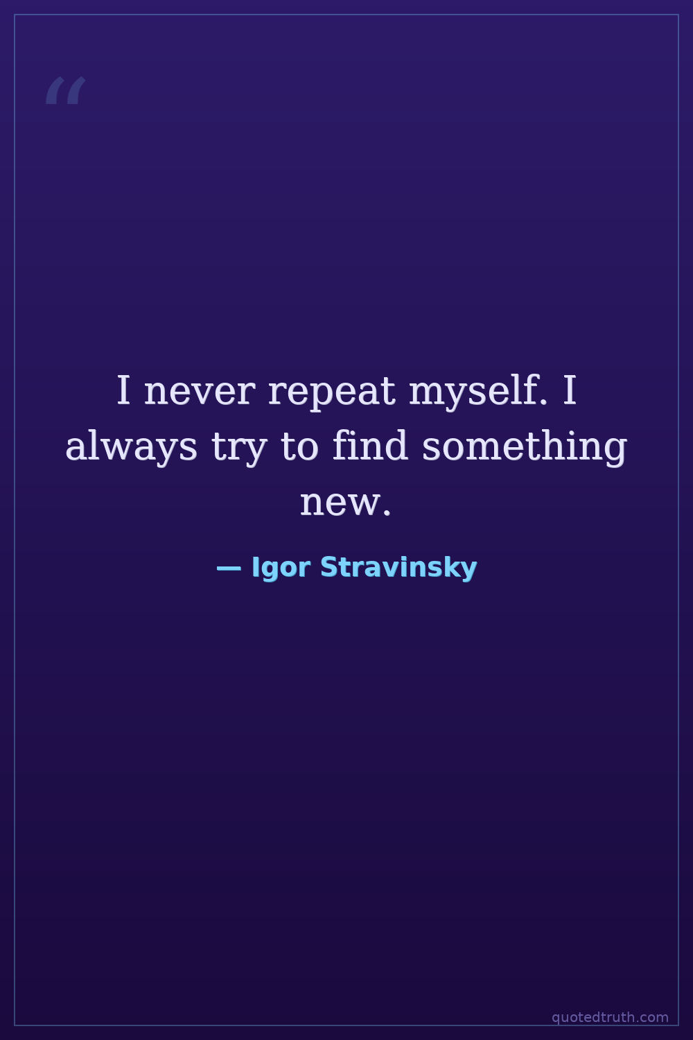 I never repeat myself. I always try to find something new.