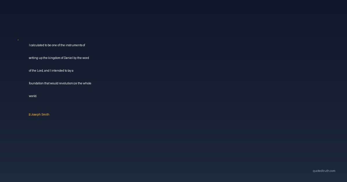 I calculated to be one of the instruments of setting up the kingdom of Daniel by the word of the Lord, and I intended to lay a foundation that would revolutionize the whole world.