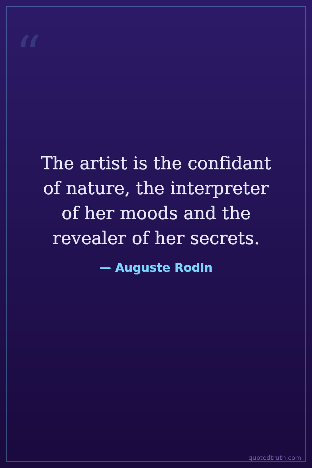 The artist is the confidant of nature, the interpreter of her moods and the revealer of her secrets.