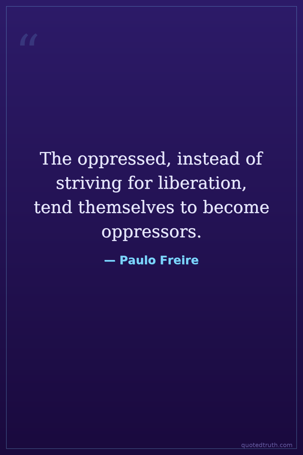 The oppressed, instead of striving for liberation, tend themselves to become oppressors.