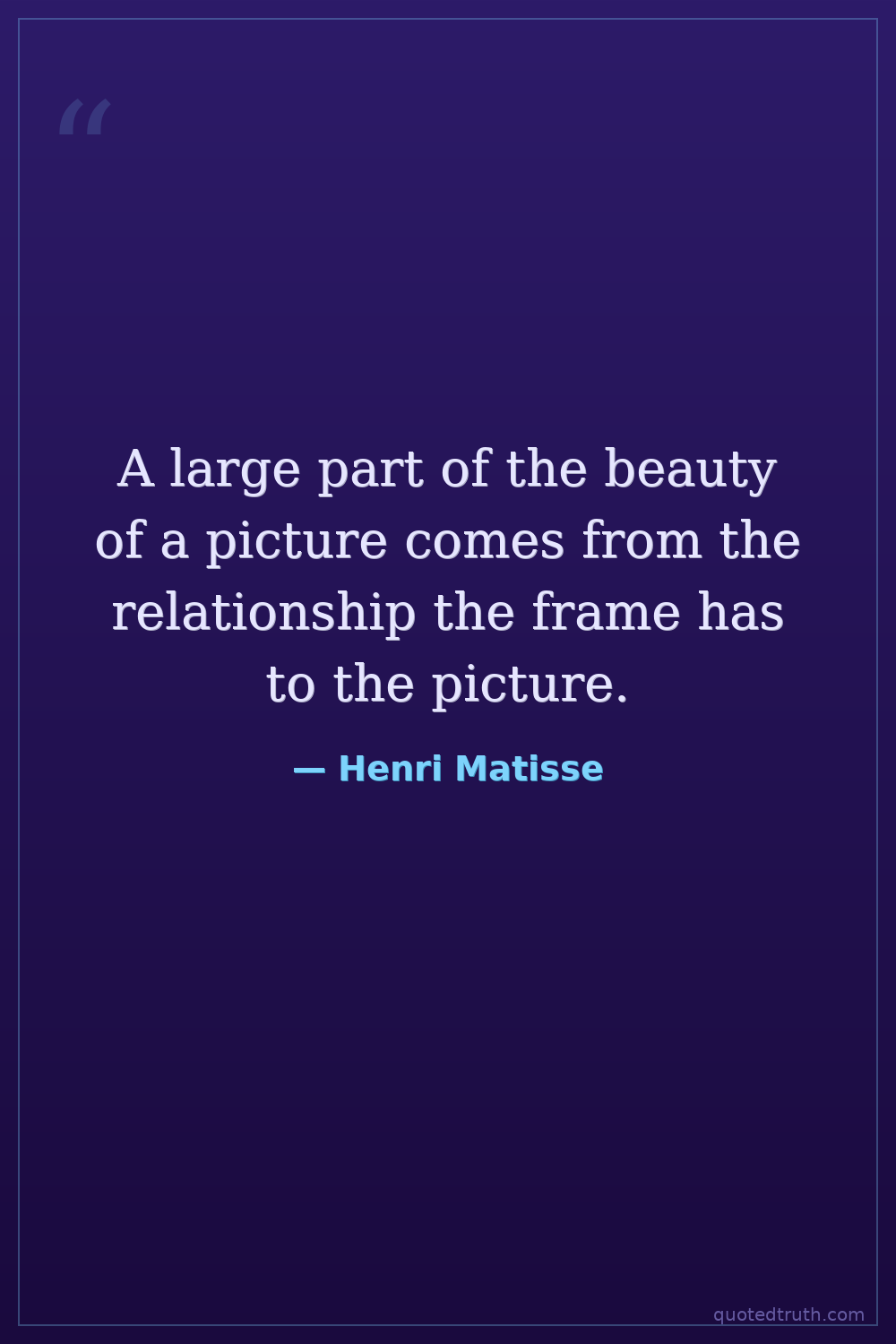 A large part of the beauty of a picture comes from the relationship the frame has to the picture.