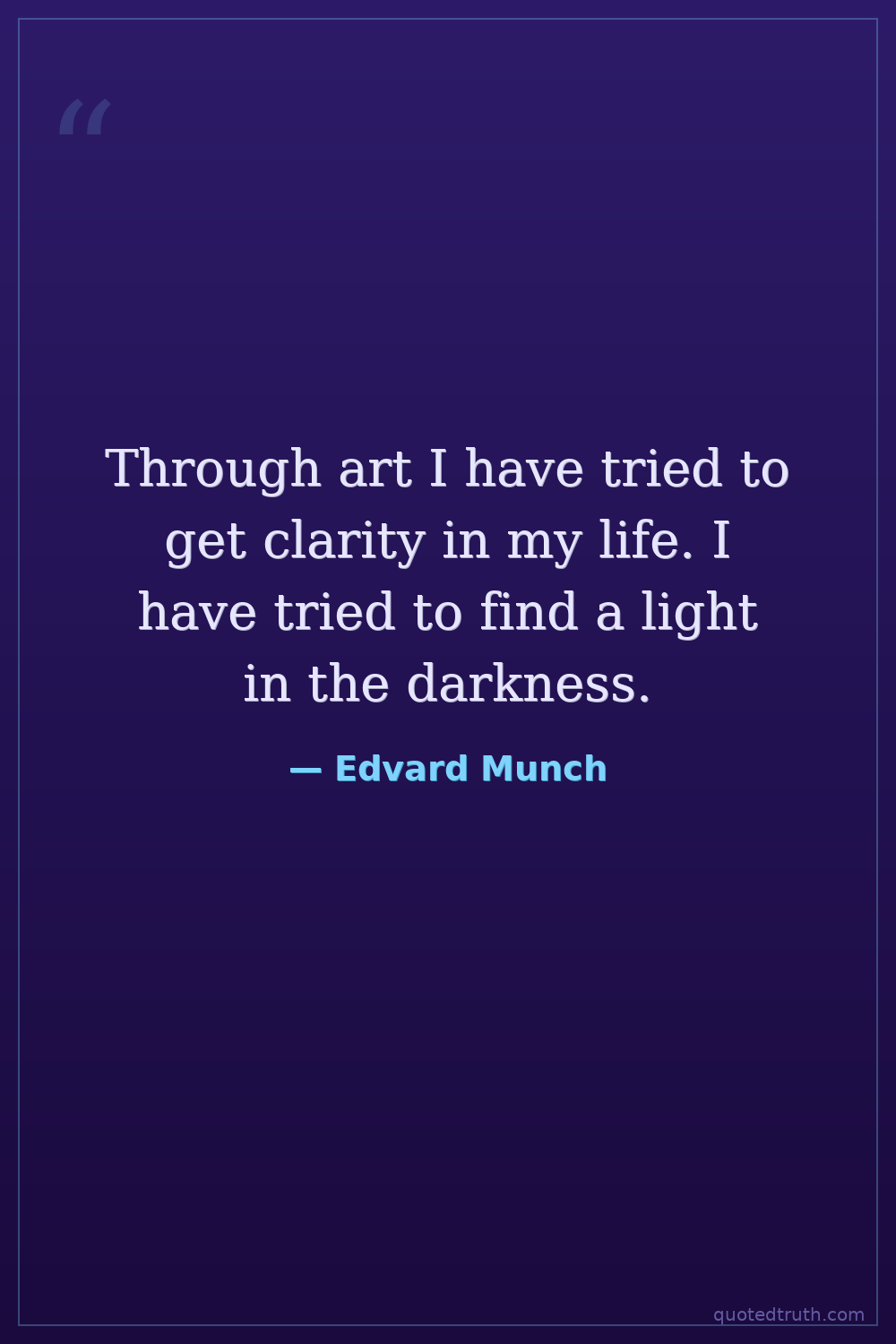 Through art I have tried to get clarity in my life. I have tried to find a light in the darkness.
