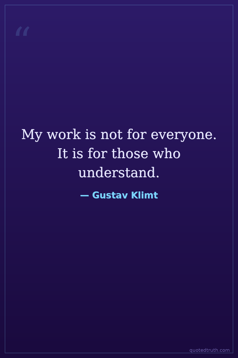 My work is not for everyone. It is for those who understand.