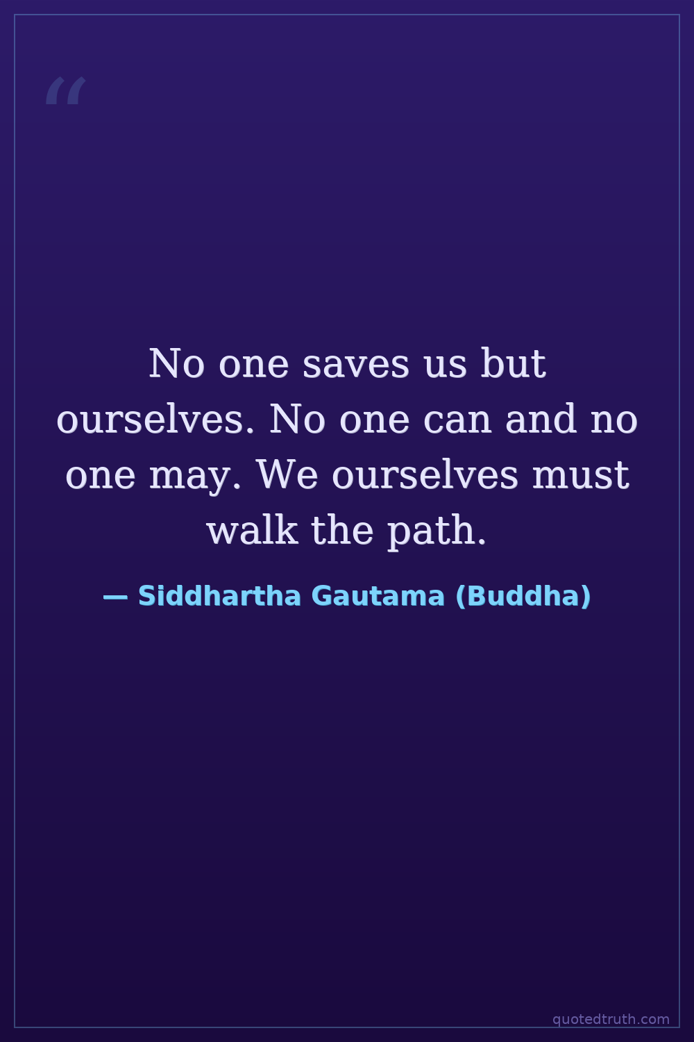 No one saves us but ourselves. No one can and no one may. We ourselves must walk the path.