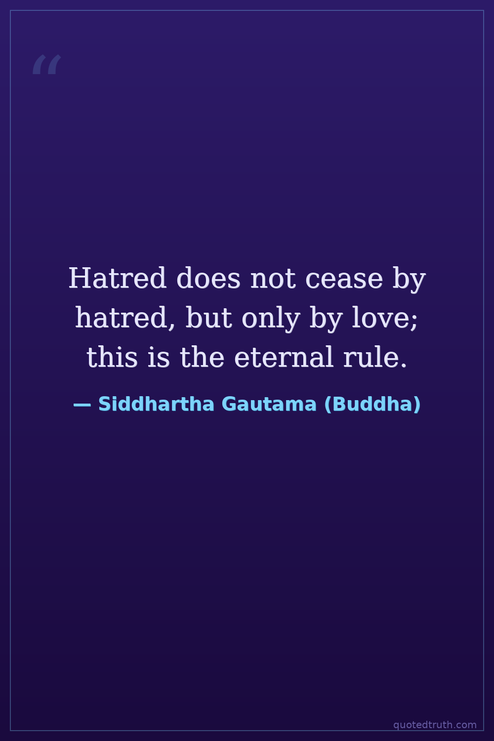 Hatred does not cease by hatred, but only by love; this is the eternal rule.