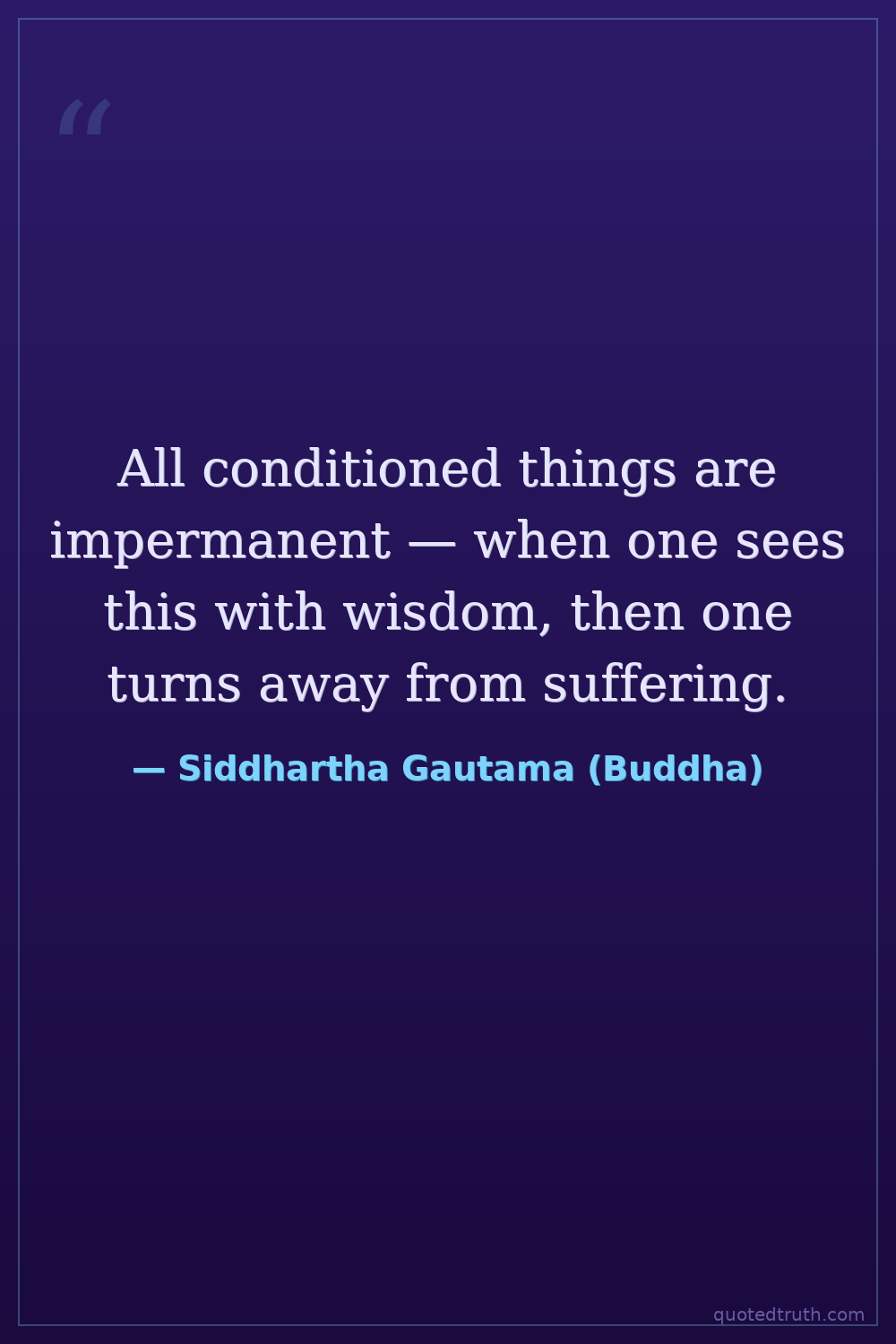 All conditioned things are impermanent — when one sees this with wisdom, then one turns away from suffering.