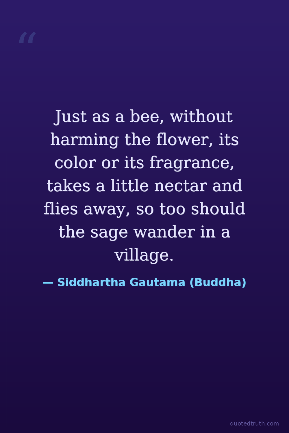 Just as a bee, without harming the flower, its color or its fragrance, takes a little nectar and flies away, so too should the sage wander in a village.