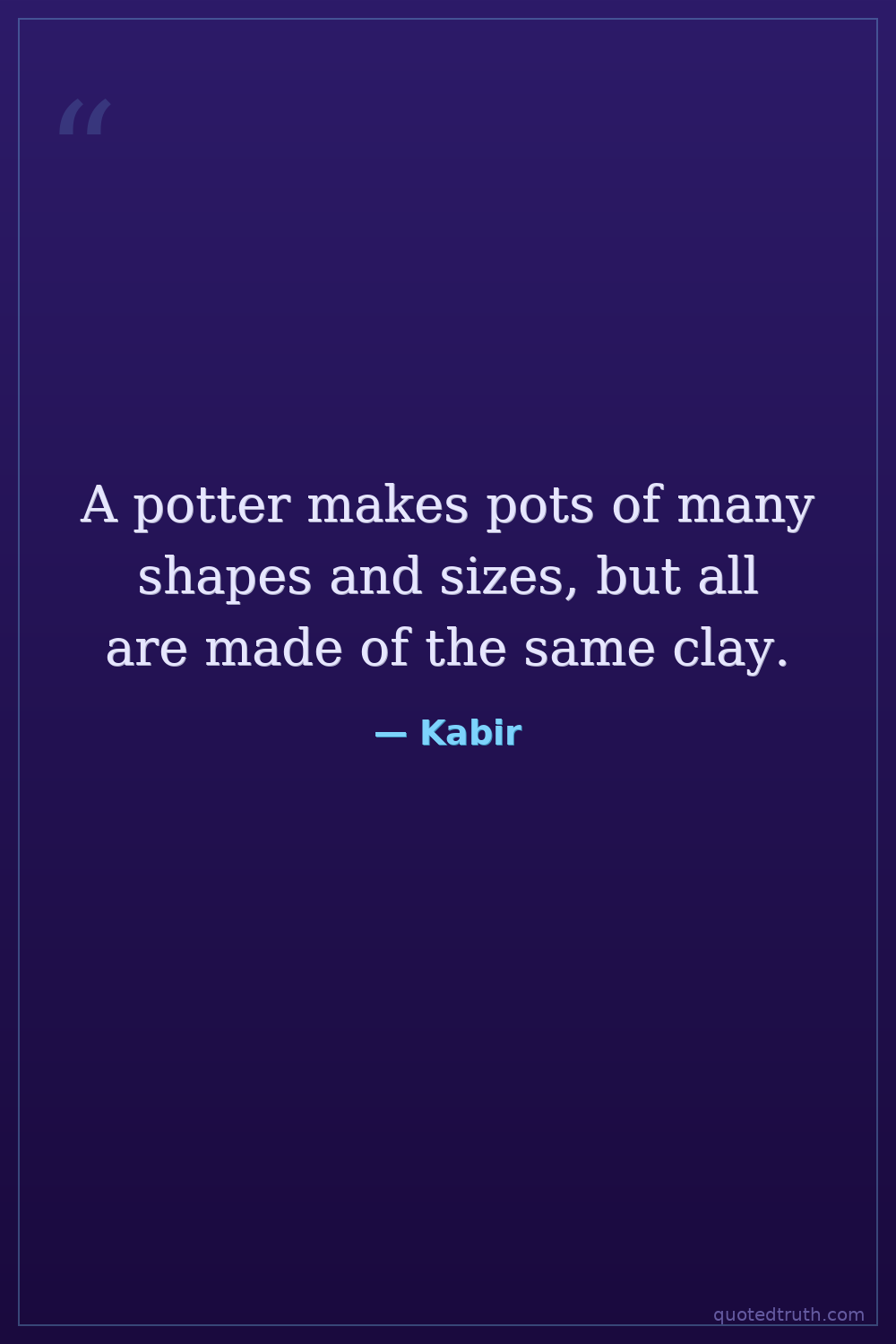 A potter makes pots of many shapes and sizes, but all are made of the same clay.