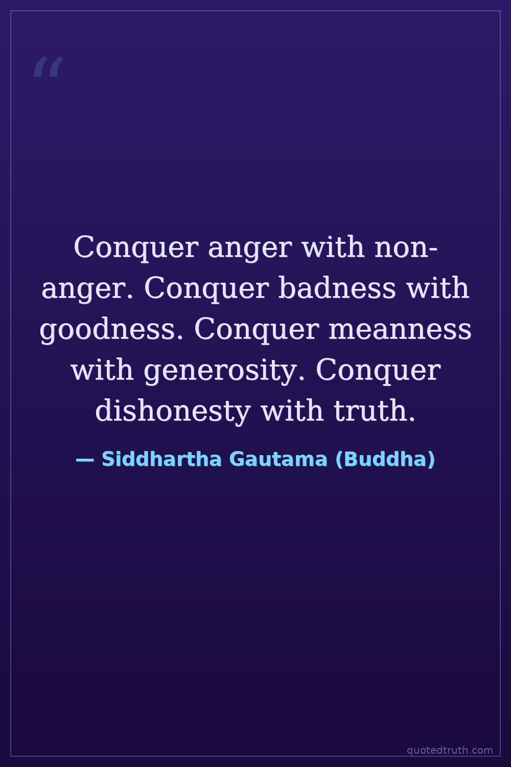 Conquer anger with non-anger. Conquer badness with goodness. Conquer meanness with generosity. Conquer dishonesty with truth.