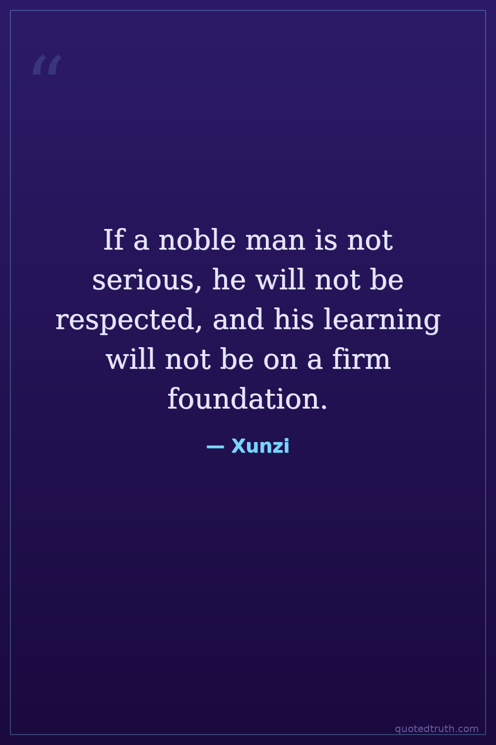 If a noble man is not serious, he will not be respected, and his learning will not be on a firm foundation.