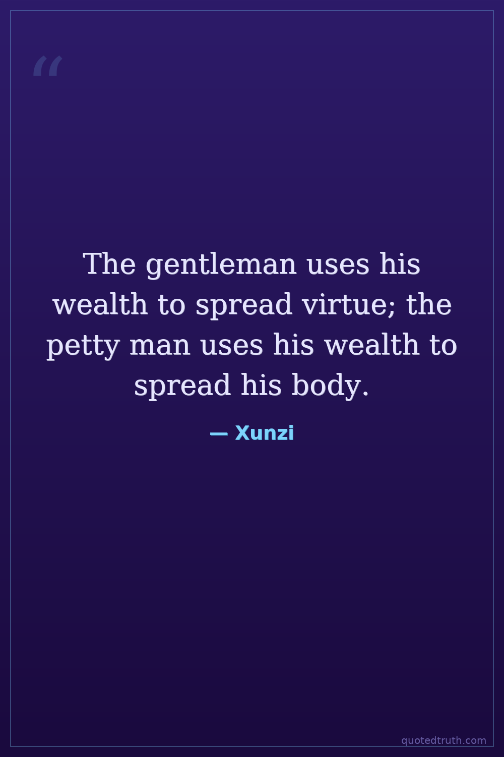 The gentleman uses his wealth to spread virtue; the petty man uses his wealth to spread his body.