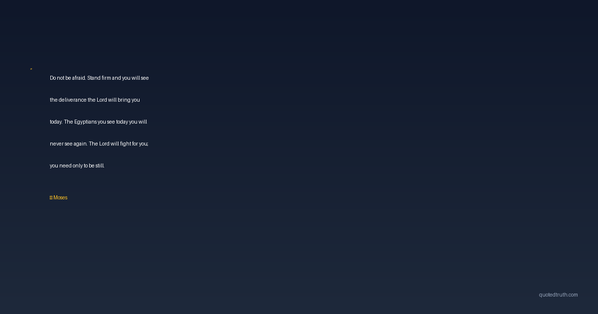 Do not be afraid. Stand firm and you will see the deliverance the Lord will bring you today. The Egyptians you see today you will never see again. The Lord will fight for you; you need only to be still.