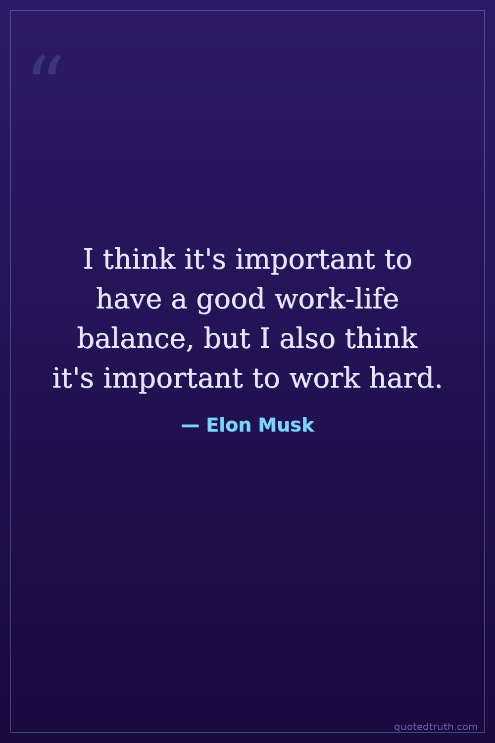 I think it's important to have a good work-life balance, but I also think it's important to work hard.
