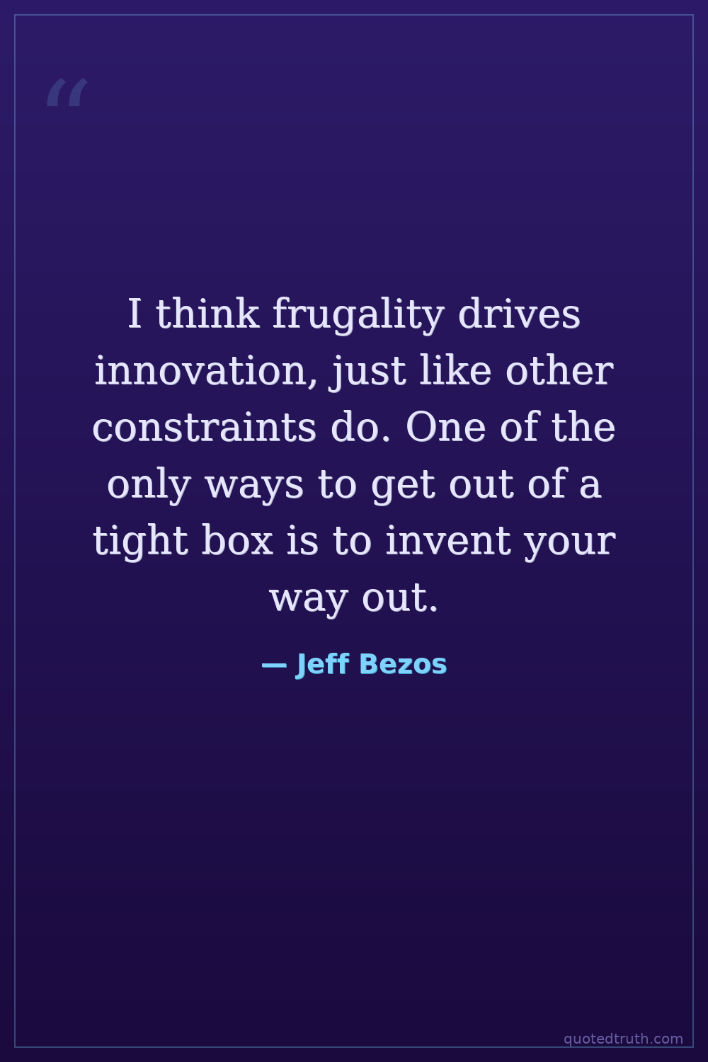 I think frugality drives innovation, just like other constraints do. One of the only ways to get out of a tight box is to invent your way out.
