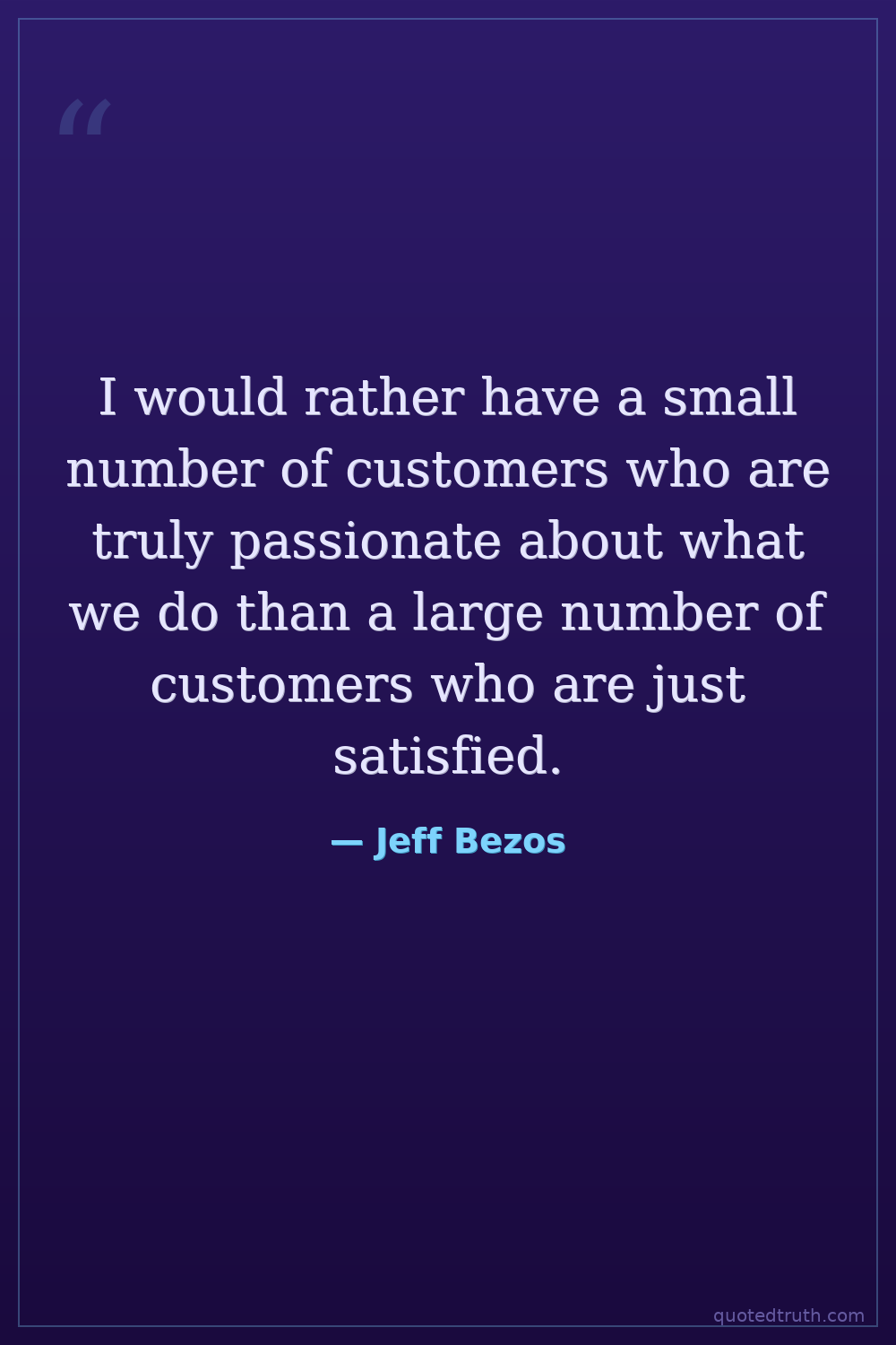 I would rather have a small number of customers who are truly passionate about what we do than a large number of customers who are just satisfied.