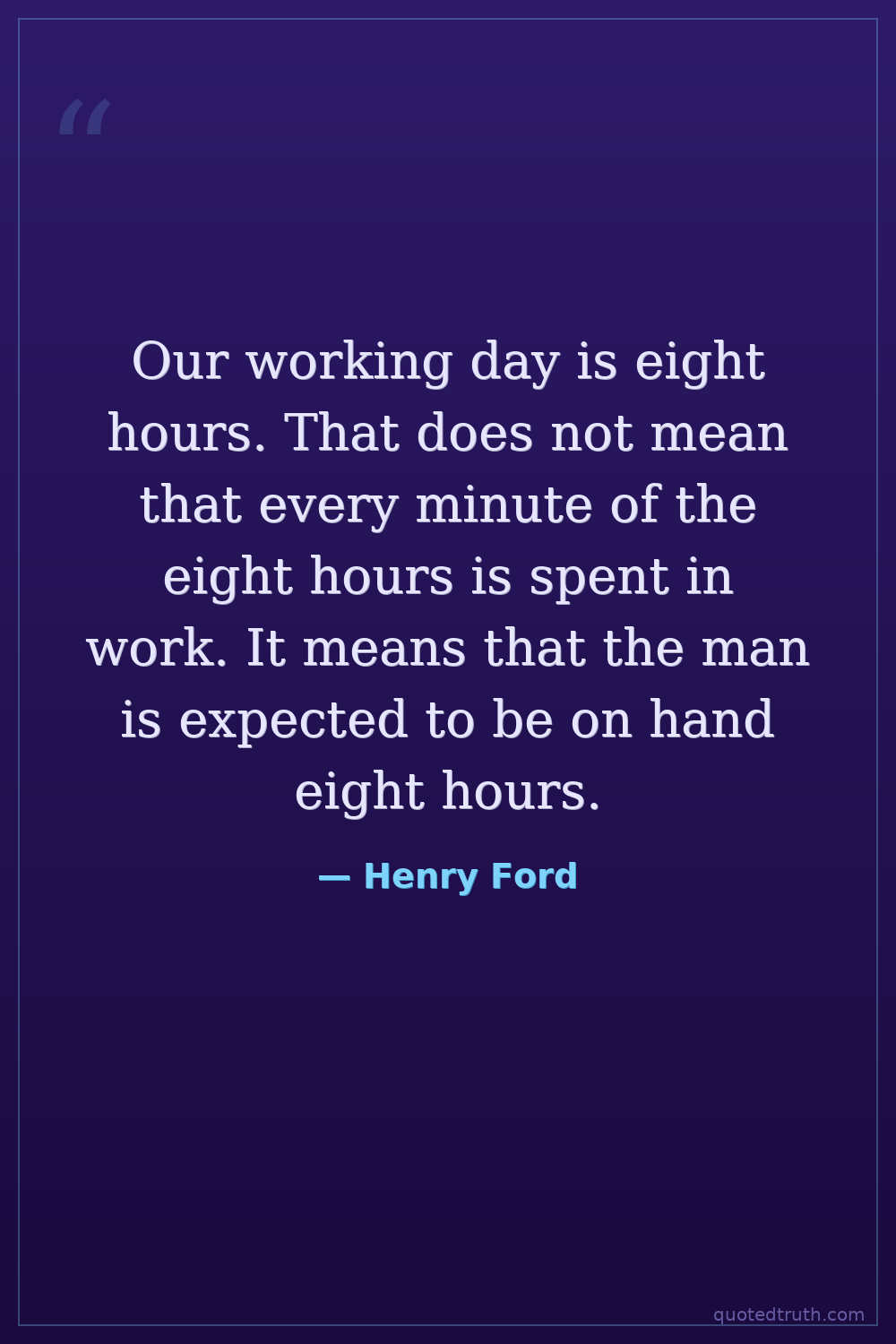 Our working day is eight hours. That does not mean that every minute of the eight hours is spent in work. It means that the man is expected to be on hand eight hours.